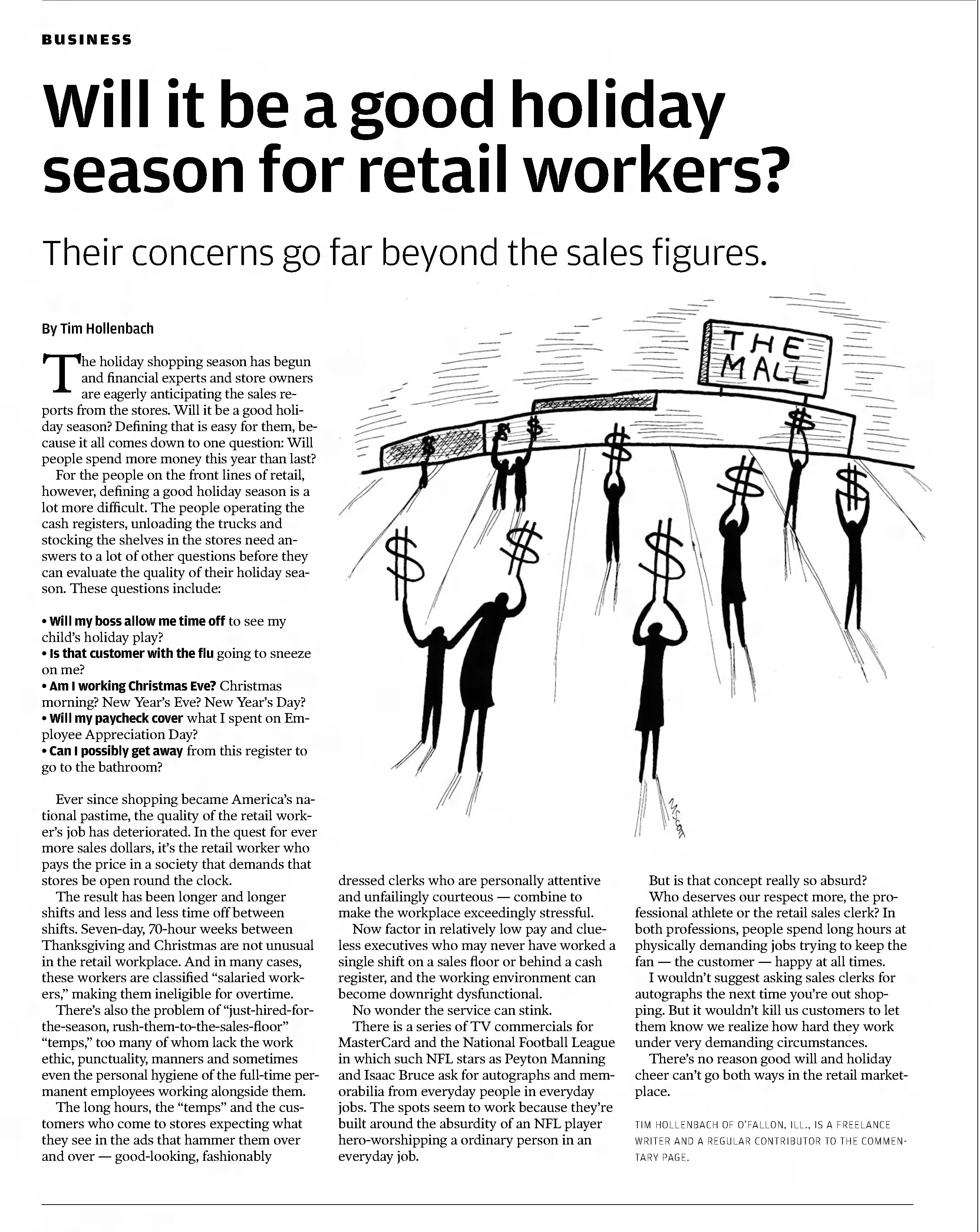 Written by Tim HollenbachNovember 15, 2005January 26, 2022 Will it be a good season for retail workers? will-it-be-a-good-s-1Download Share this: Share on X (Opens in new window) X Share on Facebook (Opens in new window) Facebook Like Loading... Related